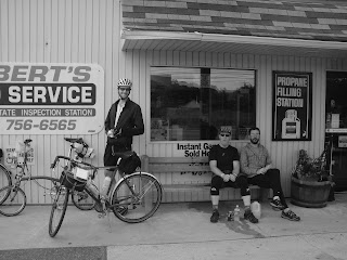 Back on course, we later caught up with Chris and Tom. They did not miss the turn. Apparently,in the process of revising the cue sheet to address flood damaged roads, a "TFL" cue worked its way in front of S. Church Road. Time for another revision.